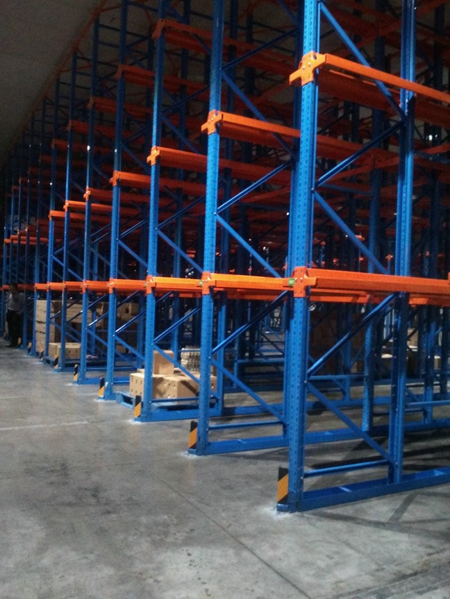 貫通式貨架:是一種不以通道分割,連續(xù)性的整體性貨架;貫通式貨架采用托盤存取模式、適用于存放品種單一,大批量的貨物;與托盤貨架相比、倉庫利用率可達到80%左右,倉庫利用空間率可提高30%以上,是存儲效率高的貨架。在支撐導軌上,托盤按深度方向存放,一個緊接著一個。投資成本相對比較低,適用于橫向尺寸較大,品種較少,數(shù)量較多,常用來儲存大批相同類型貨物,由于其存儲密度大對地面空間利用率較高,常用于冷庫、食品、煙草等存儲空間成本較高的倉庫。
